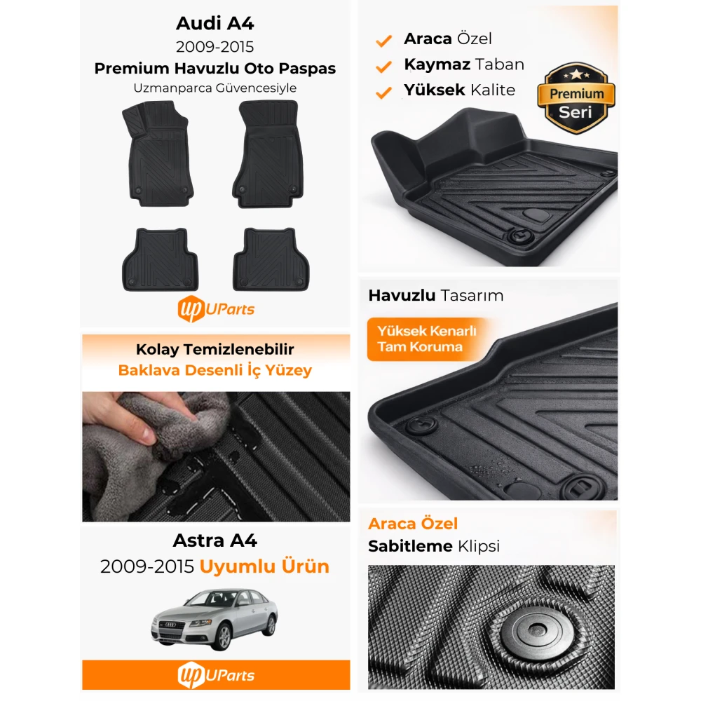 | Ürün Adı | Audi A4 2009-2015 Havuzlu Paspas Takımı UParts |