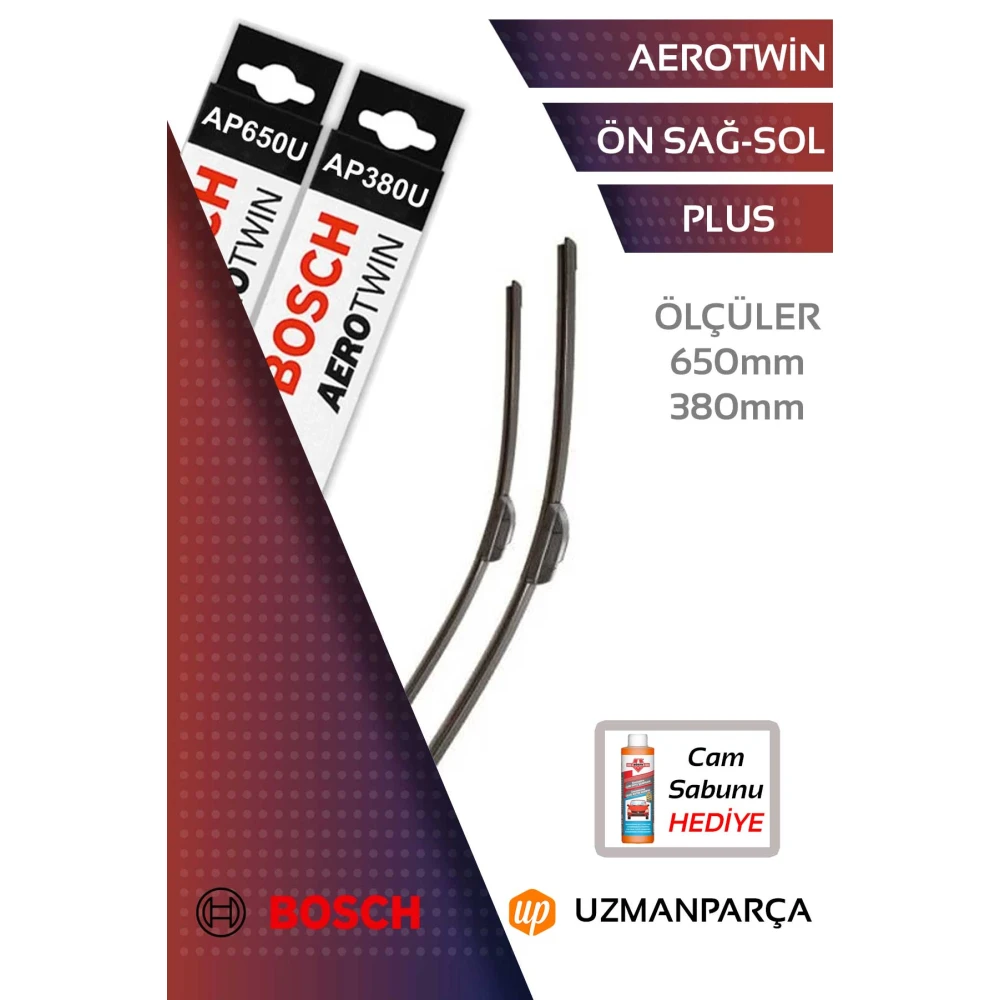 1 adet sürücü (650 mm) ve 1 adet yolcu (380 mm) sileceği olmak üzere toplam 2 adet silecek gönderilir.