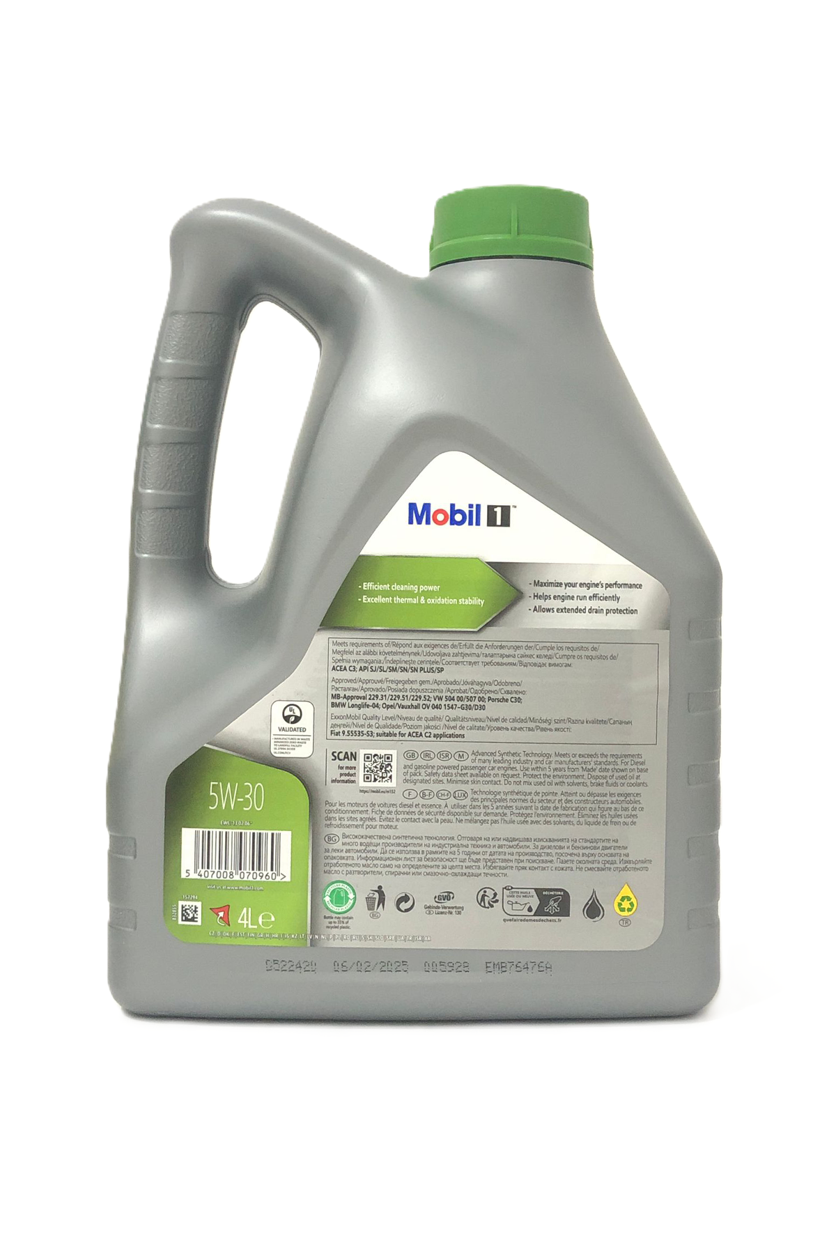 Mobil 1 ESP 5W-30, olağanüstü temizleme gücü ve aşınma koruması sağlamaya yardımcı olmak ve Dizel Partikül Filtreleri (DPF'ler) ve Benzin Katalitik Konvertörleri (CAT'ler) ile tamamen uyumlu olmak üzere formüle edilmiş ileri teknoloji bileşenlerin tescilli bir karışımıyla üretilmiştir.