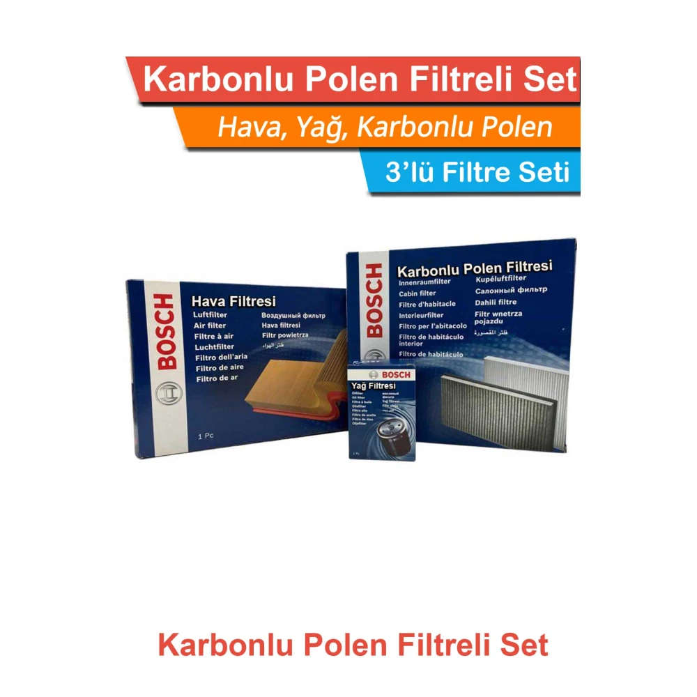 Peugeot 207 1.4 HDI Euro5 Bosch Filtre Bakım Seti 2011-2012 Hava+Yağ+Karbonlu Polen |