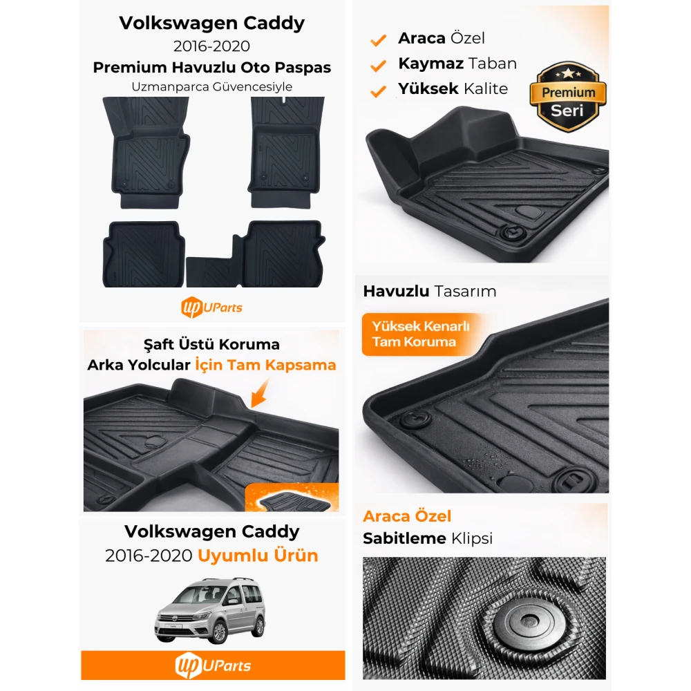 | Ürün Adı | Volkswagen Caddy 2016-2020 Havuzlu Paspas Takımı UParts |